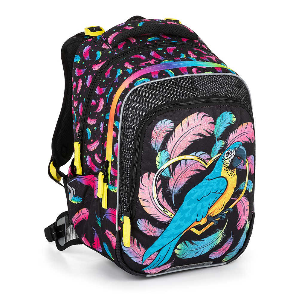 Vidám hátizsák papagájjal kislányoknak 1-3. osztályos korig. A súlya mindössze 0,94 kg, mégis tágas. Három nagy rekesszel és egy szervezővel rendelkezik a mobiltelefon, pénztárca és egyéb értéktárgyak számára. Műanyag lábakon áll, és fényvisszaverő elemekkel világít a sötétben. Az új, állítható mellkasi övvel és könnyű, levehető csípőövvel ellátott hátrendszer egészségügyi tanúsítvánnyal rendelkezik. Miért kiváló választás a Beta iskolai hátizsák egy fiatal iskolás lány számára Nagyon könnyű - súlya mindössze 0,94 kg. Három tágas rekesszel rendelkezik. A főbe nagyméretű iskolai mappák, valamint A4-es tankönyvek és füzetek is elférnek. A fő kamrában van egy tömörített zseb elasztikus oldalsó pántokkal az A4-es mappák és nagyméretű tankönyvek számára. Segít, hogy a nehéz felszereléseket a lehető legközelebb húzza és tartsa a hátához, így az iskolás vagy a tanuló súlypontja közel van a gerincéhez, és nem dől el járás közben. Az elülső zsebben praktikus szervezőt találunk a mobiltelefon, a ceruza, a fejhallgató és a pénztárca számára. Az elülső zsebben lévő fekete csatra hálós táska rögzíthető. Esetleg a pénznek vagy a fejhallgatónak. A cipzáras zsebben elfér egy power bank. A töltőkábelt csak át kell húzni a nyitott tekercsen a szervezőbe helyezett telefonhoz. Az oldalakon zsebek találhatók egy italos palack vagy egy esernyő számára. Az ergonomikusan formázott hát és a légáteresztő derékszíj támogatja a helyes testtartást. A rugalmas mellkasi öv segíti, hogy a hátizsák stabilan álljon a háton. Megakadályozza, hogy a vállpántok lecsússzanak a vállakról. A vállpántok és a hátrendszer puhán párnázott. A pántok felső és alsó műanyag csatokkal állíthatóak. A hosszúságot úgy kell beállítani, ahogy az iskolás lány növekszik. A pántok végei mágnesesek. Hogy ne villogjanak, egyszerűen csíptesse őket a műanyag csatra egy mágnessel. A hátizsák tollai csillámokkal vannak megszórva 3 év garancia A hátsó rekeszbe bevarrt névtábla. A hálós táska és a kulcstartó nem tartozék. Ezeket hozzáadhatja a kosarához. A kiegészítők kategóriában találod őket.