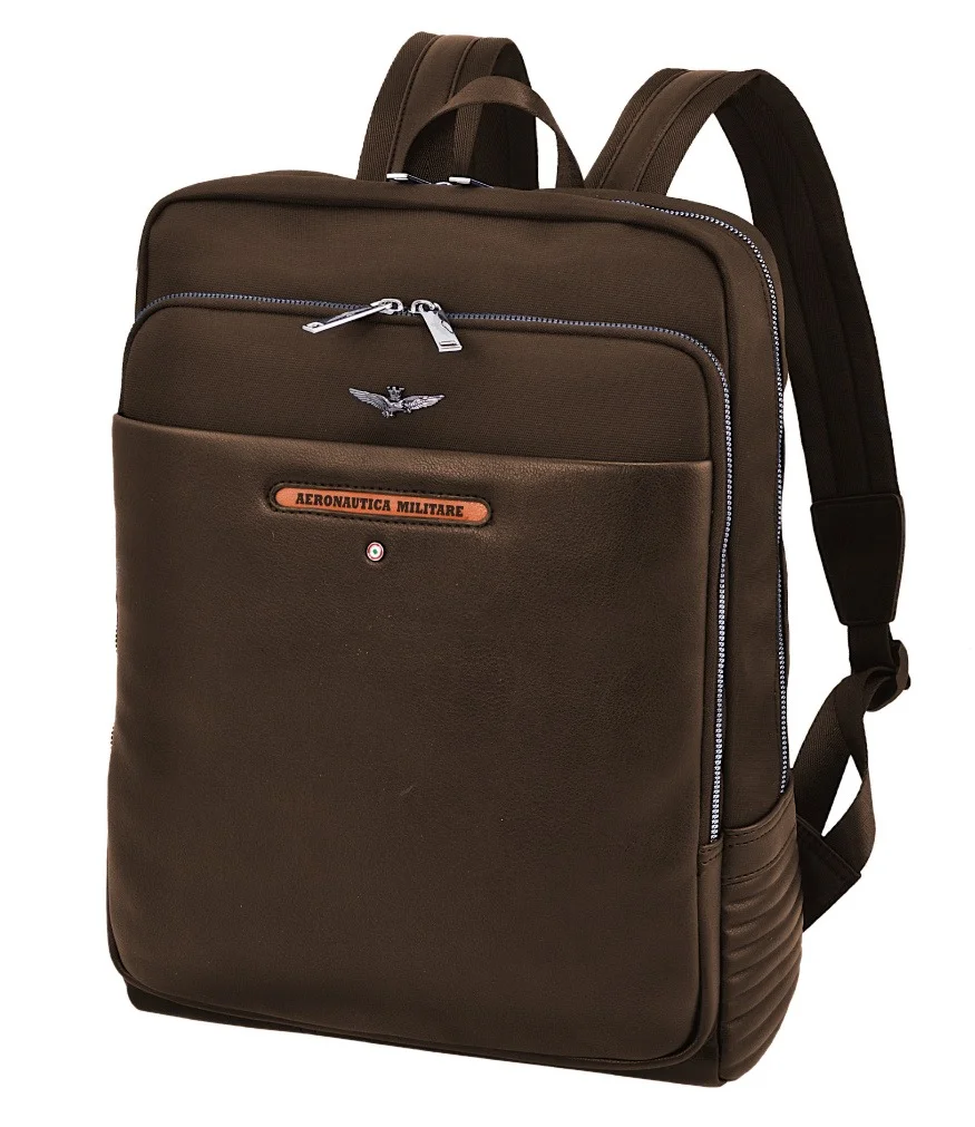 Městský elegantně - sportovní batoh od prestižní značky Aeronautica Militare série Sky classic v hnědé barvě vyznačující se kombinací dvou materiálů, imitace kůže a technické tkaniny, a také přední kapsou na smartphone s logem Aeronautica Militare. Komfortní rozměry zaručují příjemné každodenní nošení. Vhodný i pro nejnáročnější zákazníky díky prvotřídnímu zpracování.