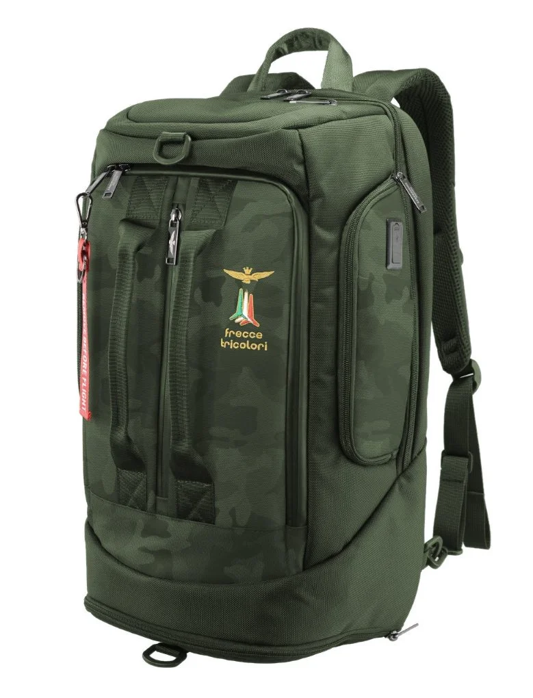 Taška-batoh v zelené barvě s maskáčovým potiskem italské značky Aeronautica Militare série Drone, je vyroben z technické tkaniny, která zaručuje lehkost a zároveň odolnost. Detailně propracovaná taška-batoh, uschováte do ní všechny své nejdůležitější věci i na kratší cestu.