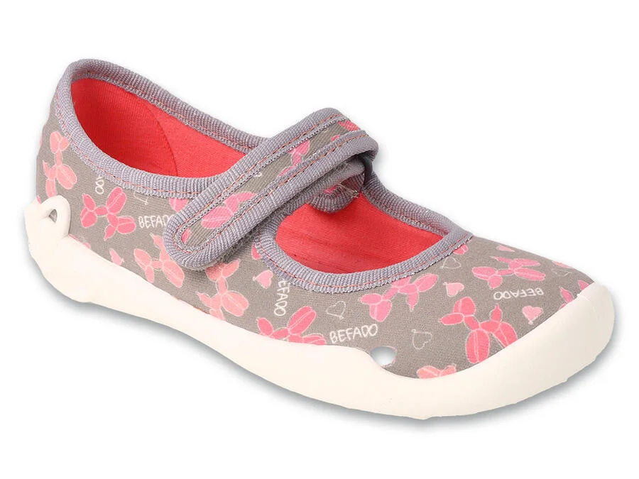 Könnyű és kényelmes papucs, amelyet független óvodásoknak terveztek. A kislány egyedül, anya és apa segítsége nélkül is fel- és leveheti őket. A fantáziadús, játékos mintáknak köszönhetően ruhákhoz és sportnadrágokhoz egyaránt passzolnak. A balerinák légáteresztő anyagból készültek. Lélegző talppal rendelkeznek. Mindez azt jelenti, hogy a láb nem izzad bennük túlzottan, ami hozzájárul a gyermek fokozott kényelméhez. Belül puha Soft-B System talpbetétet használtak, ami nagyon kényelmessé teszi a Befado Blanca cipőket, és gondoskodik a lábfejről a gyermek óvodai tartózkodása alatt. - A Befado Blanca cipő megfelel az egészséges lábbelivel szemben támasztott összes követelménynek - A cipő megerősített hátsó része gondoskodik a nagyszerű sarokstabilitásról - Az alacsony ék alakú sarok elnyeli az ütéseket a sarokrészben - Puha és rugalmas talpbetét - Bőséges lábujjbőség. A széles orrnyereg lehetővé teszi a lábujjak szabad mozgását - A könnyű és rugalmas talp ellensúlyozza a lábfáradtságot - A rendkívül légáteresztő anyag és a szellőző talp biztosítja a felesleges nedvesség elvezetését - Tépőzáras rögzítés, Alkalmas egész napos otthoni és iskolai viseletre - Anyagösszetétel - felső rész kiváló minőségű szövetből, alsó rész (talp): Kiváló minőségű PVC anyag - Technológia: légáteresztő talp, puha és rugalmas talpbetét, Soft-B rendszer, lábujjvédő rendszer Talpbetét hossza: - 25. méret - 16 cm - 26. méret - 16,6 cm - 27. méret - 17,2 cm - 28. méret - 17,9 cm - 29. méret - 18,5 cm - 30. méret - 19,1 cm A talpbetét hossza a cipőben található talpbetét méretét jelenti. A kényelmes használat érdekében javasoljuk, hogy a lábfej mért hosszához a kiválasztáskor adjon hozzá 5-8 mm-t, majd válassza ki a megfelelő cipőméretet.