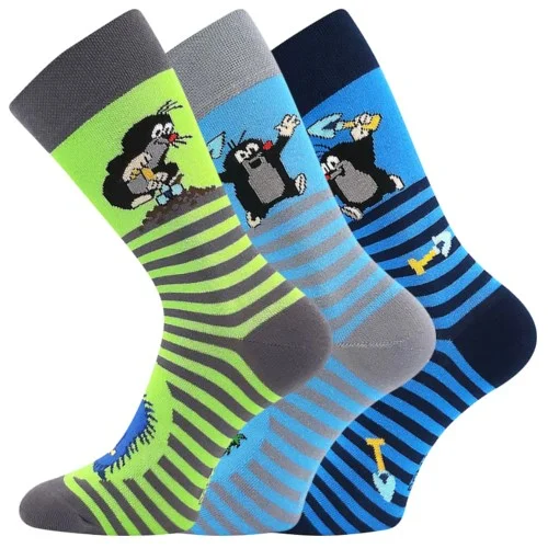 Szociális és vicces zokni A Boma® KR 111 vékony zokni Zdeněk Miler művész aranyos Vakond képével. Térj vissza a mesék birodalmába, és szerezz be egy Vakondot a ruhatáradba. A klasszikus zoknik magas pamuttartalommal feldobják az öltözékedet, akár öltönyt, akár farmert viselsz. Kapható 3 pár zoknit tartalmazó praktikus csomagban, sötét színekben. Jobb, ha a Vakond a zoknidban van, mint a gyepen!
