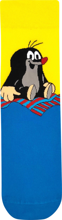 Női és férfi vicces zokni Boma® KR 211 gyenge zokni Zdeněk Miler művész aranyos Vakond képével. Térj vissza a mesék birodalmába, és szerezz be egy Vakondot a ruhatáradba. Ezek a klasszikus zoknik magas pamuttartalommal feldobják az öltözékedet, akár öltönyt, akár farmert viselsz. A 200 tűs kötés nagyon finom, a kötött kép ennek köszönhetően nagyon éles részletekkel rendelkezik.