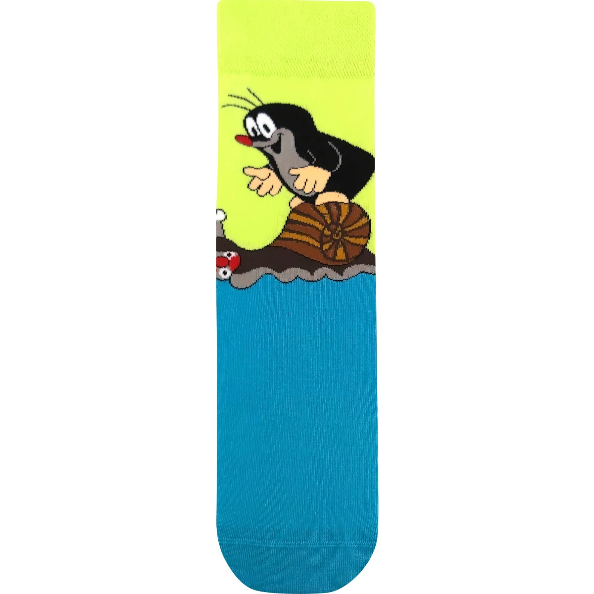 Női és férfi vicces zokni Boma® KR 211 gyenge zokni Zdeněk Miler festőművész aranyos Vakond képével. Térj vissza a mesék birodalmába, és szerezz be egy Vakondot a ruhatáradba. Ezek a klasszikus zoknik magas pamuttartalommal feldobják az öltözékedet, akár öltönyt, akár farmert viselsz. A 200 tűs kötés nagyon finom, a kötött kép ennek köszönhetően nagyon éles részletekkel rendelkezik.