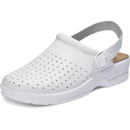 Dámské a pánské pantofle s nastavitelným páskem na patě. Pohodlná PU podešev je vybavená stélkou ze semišové kůže. Perforovaný svršek je vyroben z povrstvené kůže.