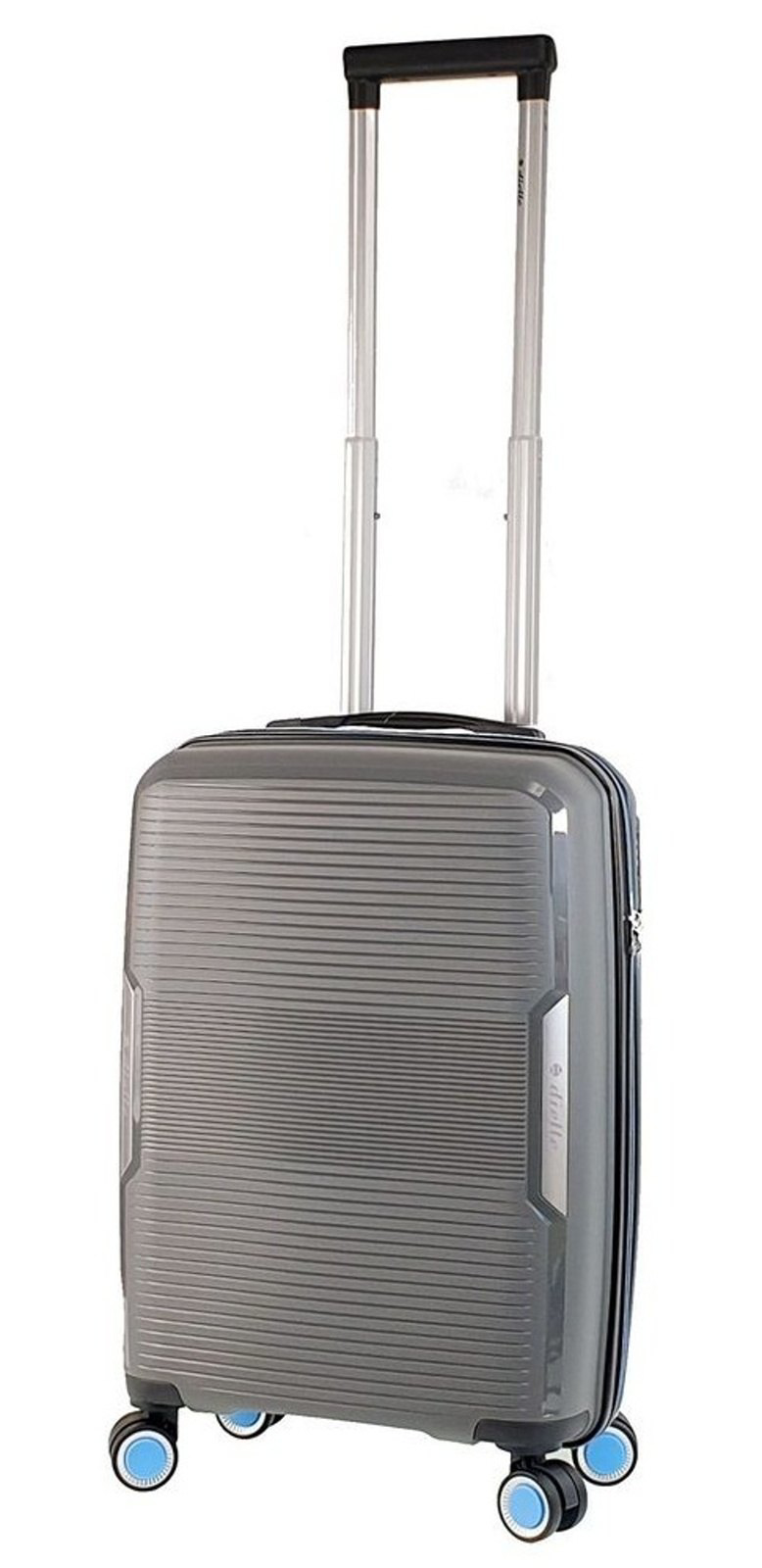 Moderní ultralehký plastový kufr 55 cm italské značky Dielle v antracitové barvě s prolisy proužků.
