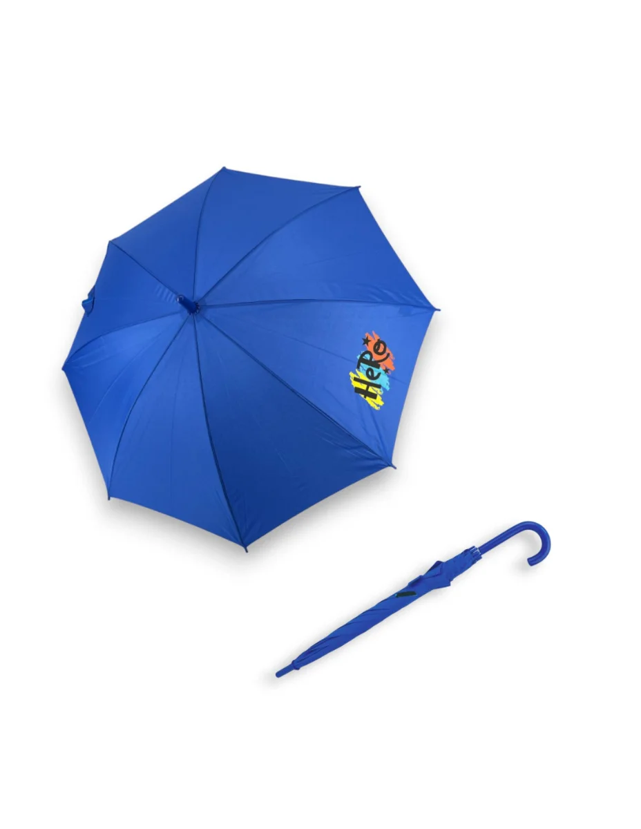 Gyermek esernyőnyél nyomtatással Gyermek esernyőnyél kiváló minőségű acélszerkezettel. A poliészter huzat ellenáll a páratartalom és a hőmérséklet változásának, nem zsugorodik. Az esernyő ívelt műanyag fogantyúval rendelkezik, és biztonságos kerek véggel van ellátva. Termékinformációk.