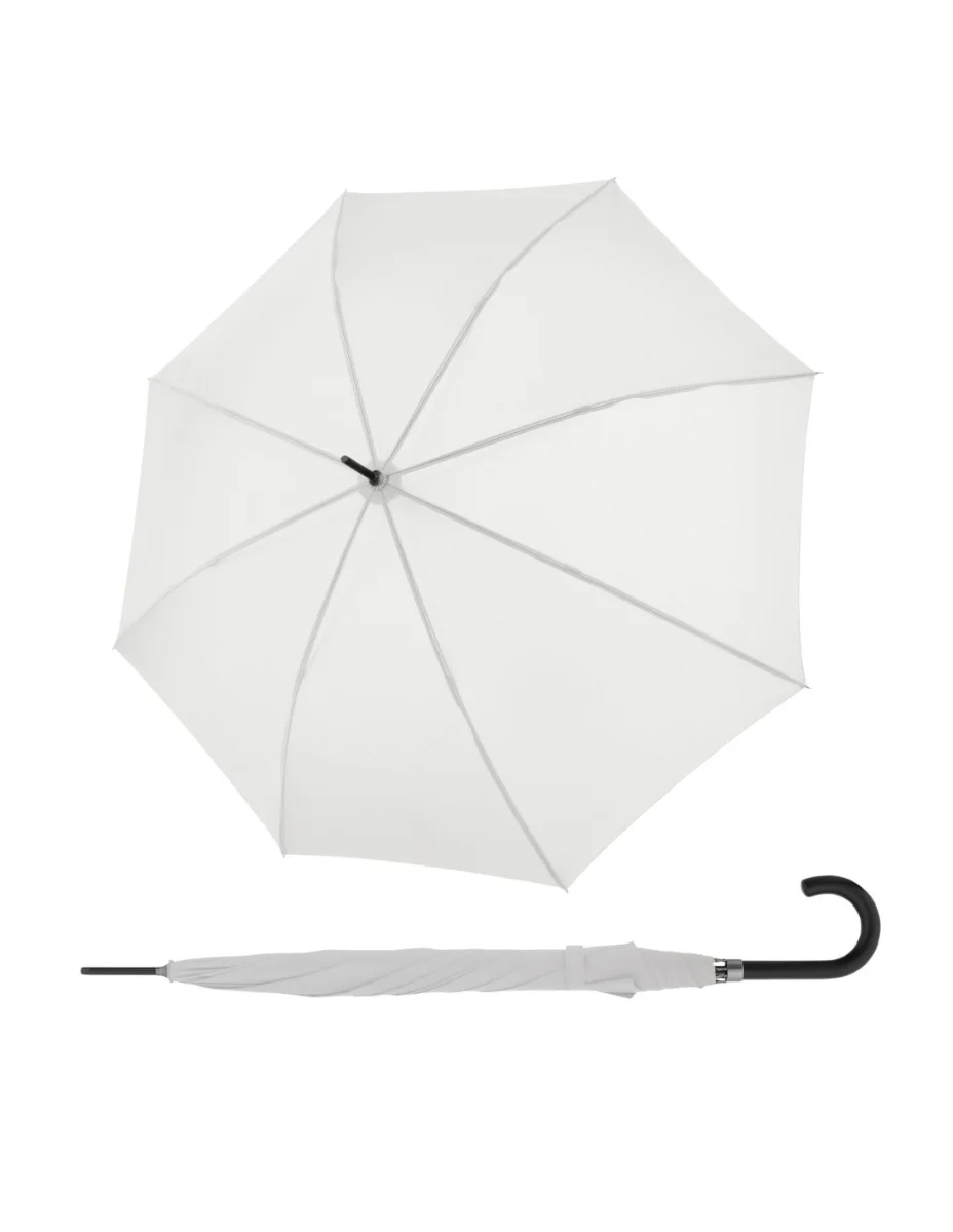 Kilövőtengelyes esernyő egyszínű mintával. Nagyon széles tetővel rendelkezik, így két ember is menedéket találhat alatta az eső elől. A műanyag fogantyú szépen illeszkedik a kézbe, és színben harmonizál az esernyő többi részével. A szerkezet többi része acélból és üvegszálból készült . Ez az anyagkombináció, valamint az esernyő kiváló minőségű kivitelezése garantálja a nagy tartósságot és rugalmasságot, így akkor sem sérül meg, ha a szél felborítja. A huzat gyorsan száradó poliészterből készült , amely ellenáll a páratartalom és a hőmérséklet változásának, és nem zsugorodik.