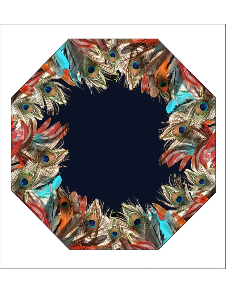 DOPPLER MANUFAKTUR Elegance Boheme Peacock - női luxus esernyő pávatoll nyomatokkal