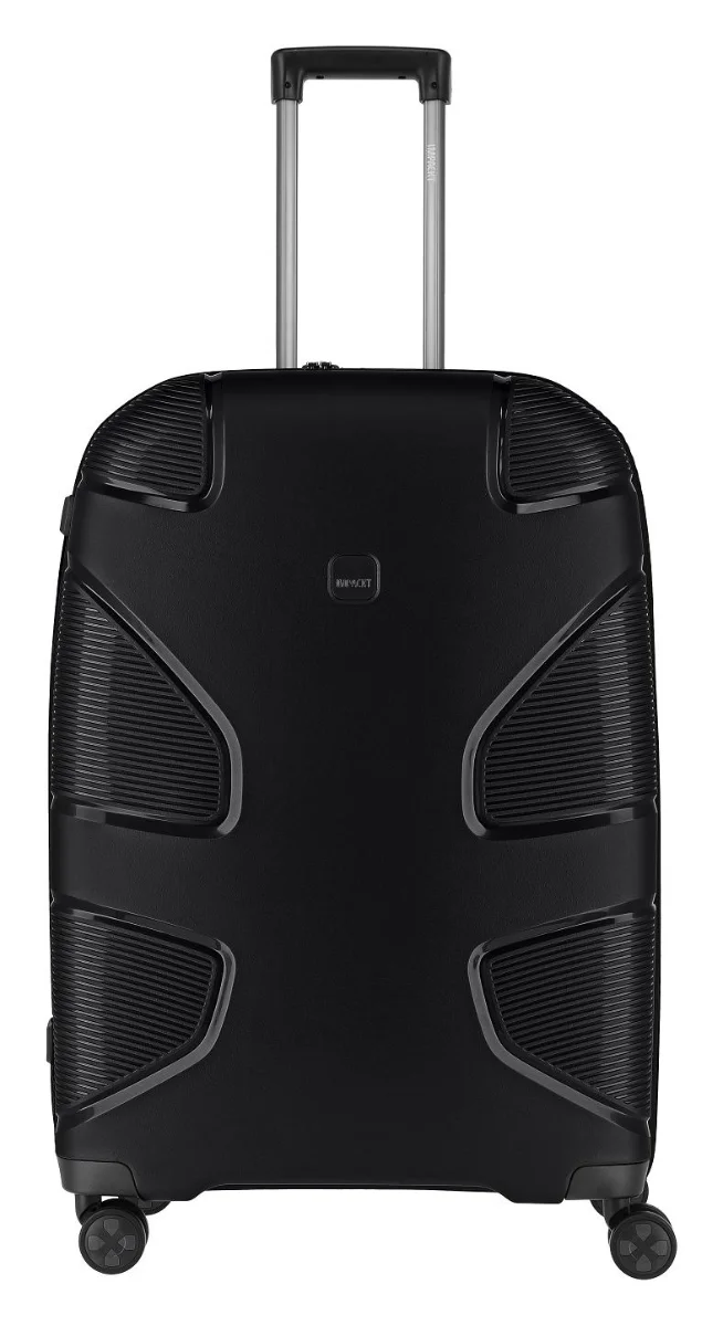 Négykerekű kagylós bőrönd beépített TSA zárral, levehető kerekekkel és vízlepergető cipzárral, részben újrahasznosított polipropilénből.