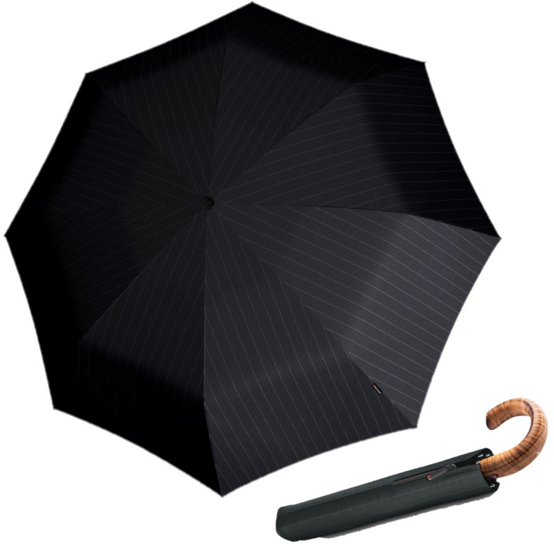 Luxus férfi összecsukható esernyő Knirps S.570 automata nyitással. Az esernyő szerkezete kiváló minőségű acélból készült, a fogantyú pedig valódi juharfából készült, amely kellemes tapintású, kellemes meglepetést okoz. Minden fogantyú egyedi - kézzel készített. Az esernyő akár 100 km/h szélsebességnek is ellenáll - szélcsatornában tesztelve. Amit a Knirps S.570 nyújt Önnek:Valódi kanadai fából készült fogantyúFekete színű, üzletszerű kivitelKényelmes automatikus nyitásKülön cipzáras védőzacskóval szállítvaAz esernyő cipzáras tasakja