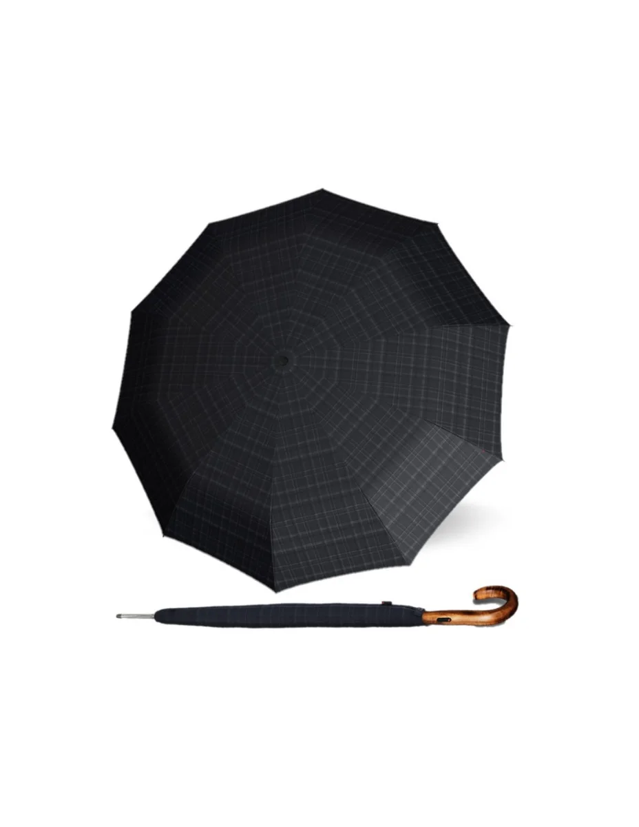 KNIRPS S.770 LONG PRINTS CHECK - férfi borotválkozó esernyő Luxus férfi borotválkozó esernyő Knirps S.770 automatikus nyitással. Az esernyő konstrukciója kiváló minőségű acélból készült, a fogantyú pedig valódi juharfából készült, amely kellemes tapintású, kellemes meglepetést okoz. Minden nyél egyedi - kézzel készített. Az esernyő akár 100 km/h szélsebességnek is ellenáll - szélcsatornában tesztelve. Amit a Knirps S.770 nyújt Önnek: valódi kanadai fa fogantyú robusztus konstrukció fekete színben kényelmes automatikus nyitás védő tokkal szállítva