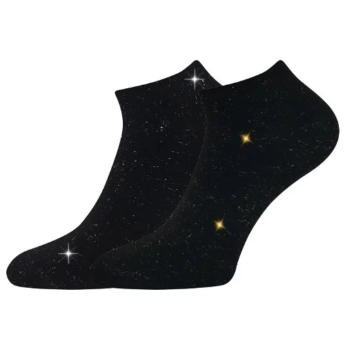 A Lonka® BIRGIT bambusz zokni női alacsony zokni a mindennapi használatra. A bambusz viszkóz természetes antibakteriális és antiallergiás tulajdonságokkal rendelkező természetes anyag, a puha és selymes szál kellemes tapintású és bőrbarát, jól felszívja a nedvességet. A minőségi zokni a 200 tűs kötésnek köszönhetően puha és sima felületű. A lábujjhegyet láncolással zárják, így nem nyom sehol, a pigue szegélye pedig puha, nem szorít. Az egyszínű gyenge rövid zokni 2 párból álló csomagban kerül forgalomba, mindegyik zokni más - csillogó az ezüst és arany lurex szálnak köszönhetően.