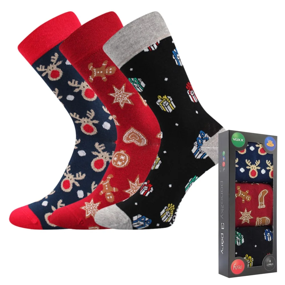 - női és férfi "trendi" zokni fésült pamutból, elasztánnal, láncos lábfejjel, díszdobozban