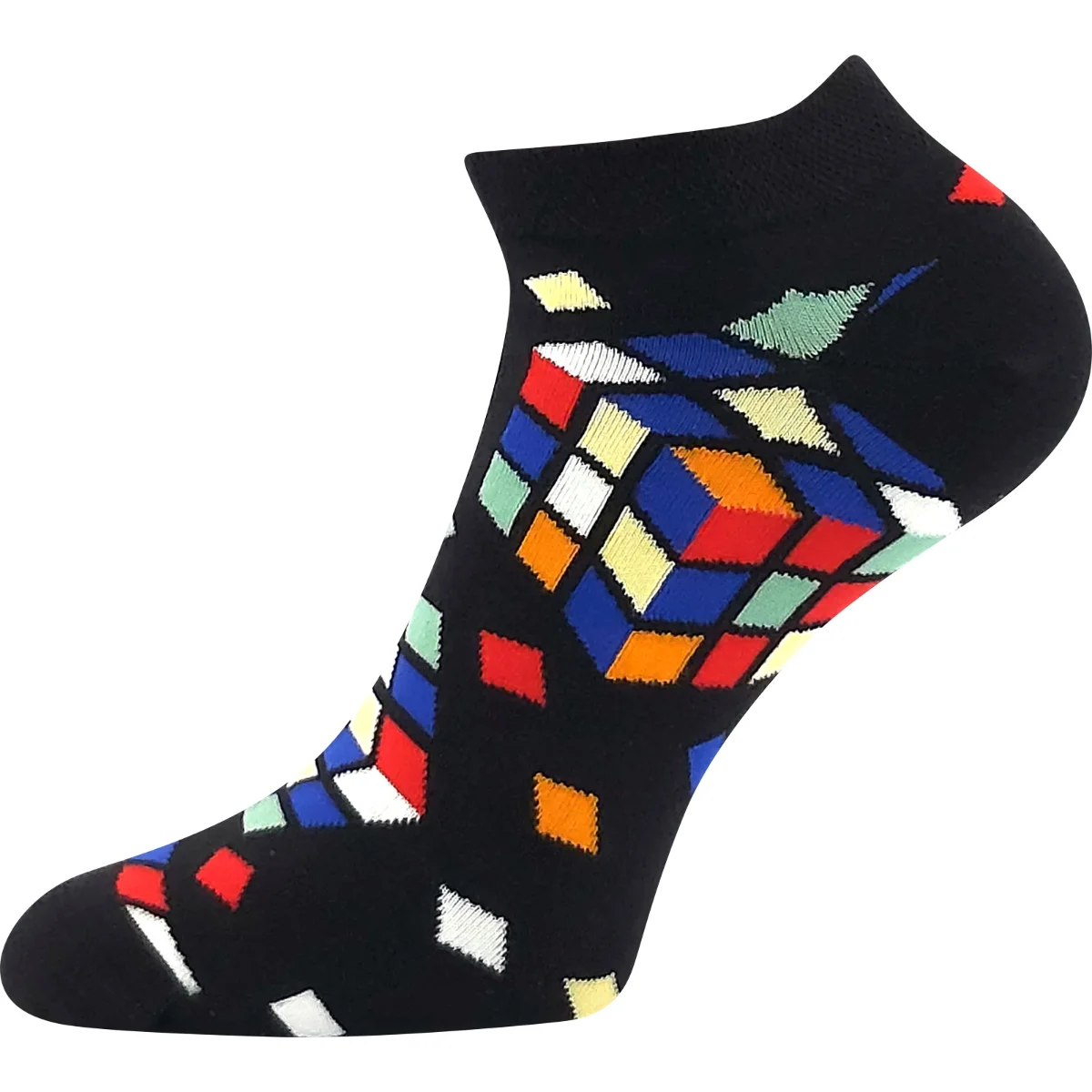 A Lonka® DEWOW női és férfi képzoknik színes és divatos zoknik, kiváló minőségben. 200 tűs gépen kötött, nagyon finom és sima kötés, így a kép minden részlete éles. A zoknik lábujja lapos láncöltéssel van összekötve, amit egyáltalán nem érez, és nem áll fenn a zokni nyomódásának veszélye. A zokniknak laza, nem összehúzódó piqué szegélye is van. A kiváló minőségű, elasztán tartalmú, fésült pamutfonal jól elvezeti a nedvességet, kényelmes a bőrön, és tökéletesen illeszkedik a lábra. A Crazy zokni feldobja az öltözékét, akár öltönyt, akár farmert visel, egész nap jól fogja érezni magát benne!