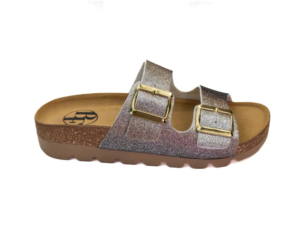 Női bronzszínű csillogó papucs ékkel