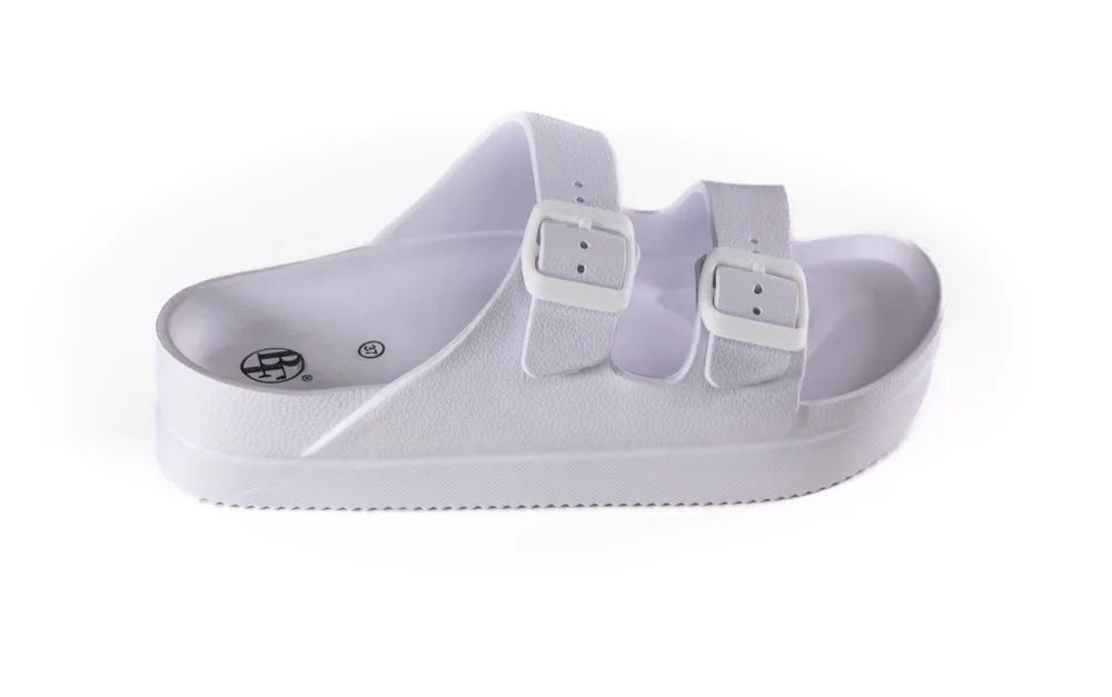 Puha habszivacsból készült papucs. A papucs nagyon kényelmes. A cipő anatómiai talpbetéttel rendelkezik, hosszúkás boltívvel.