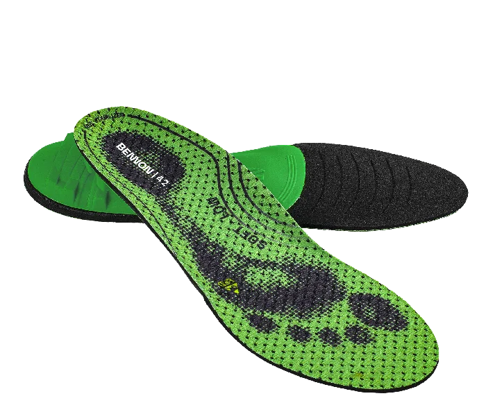 Anatómiai talpbetét maximális abszorpciós képességgel, bambuszrosttal és ütéscsillapító gél sarokkal.