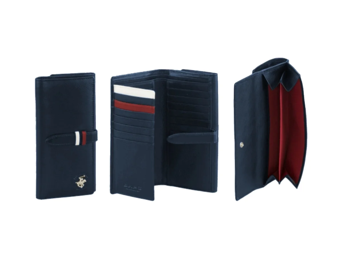 Dámská kožená peněženka značky Beverly Hills Polo Club série Loop v tmavě modré barvě. Stylová dámská peněženka Beverly Hills Polo Club BH-1350 je přesně ten typ doplňku, který vypadá nenápadně luxusně a zároveň dává smysl v každodenním provozu. Kvalitní modrá kůže, kontrastní červeno-bílé detaily a ikonické logo značky dávají jasně najevo, že tohle není žádná laciná náhražka. Uvnitř najdete přehledné členění s dostatkem prostoru pro platební i věrnostní karty, doklady a bankovky. Samostatná přihrádka na mince se zapínáním udrží drobné tam, kde mají být – žádné chrastění po kapsách. Praktické zapínání na druk zajišťuje, že peněženka drží tvar a obsah zůstane bezpečně uvnitř.