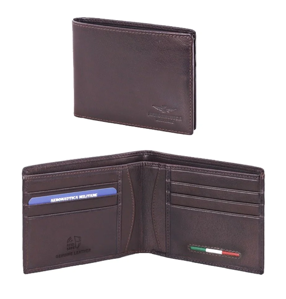 Férfi bőrtárca a tekintélyes olasz Aeronautica Militare Target sorozatból barna színben. Stílusos pénztárca, amely alkalmas sportos férfiaknak, akik az eleganciát is értékelik.