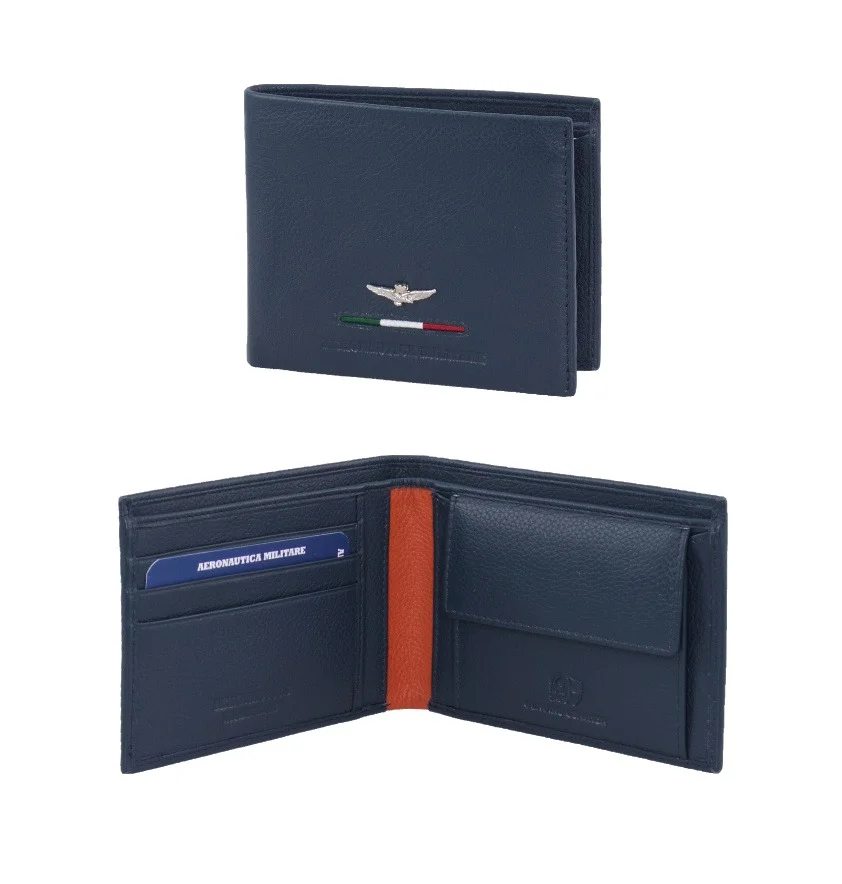 Férfi bőrtárca a tekintélyes olasz Aeronautica Militare Fighter sorozatból a népszerű kék színben. Stílusos pénztárca, amely a sportos férfiak számára alkalmas, akik az eleganciát is kedvelik.
