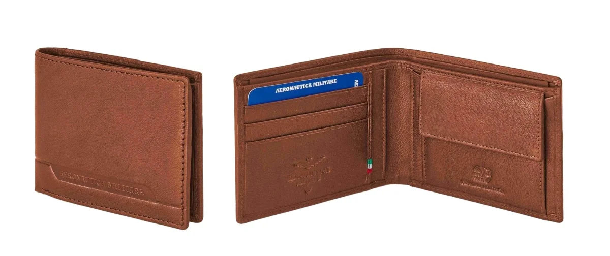 Férfi bőrtárca az Aeronautica Militare Moon sorozatú olasz tekintélyes márkától világosbarna színben. Stílusos pénztárca, amely alkalmas sportos férfiaknak, akik az eleganciát is szeretik.
