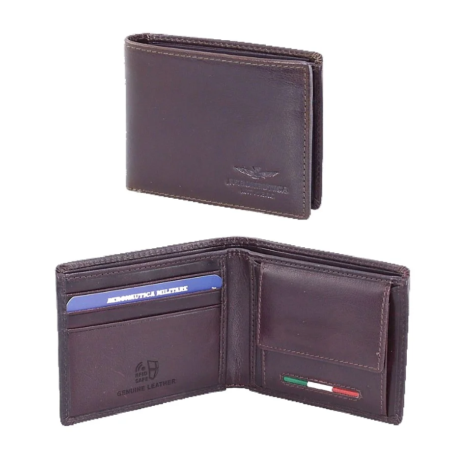 Férfi bőrtárca a tekintélyes olasz Aeronautica Militare Target sorozatból a népszerű barna színben. Stílusos pénztárca, amely a sportos férfiak számára alkalmas, akik az eleganciát is értékelik.