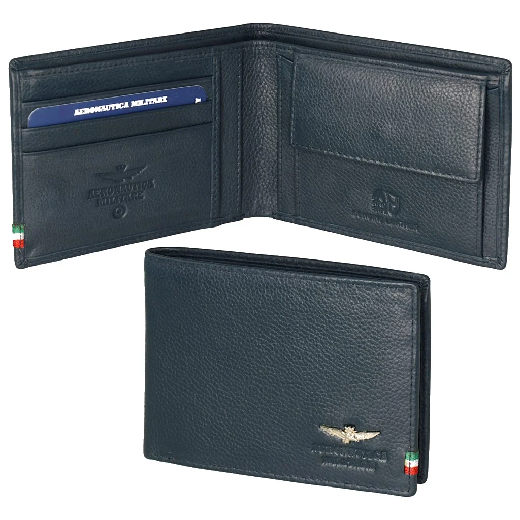 Férfi bőrtárca a tekintélyes olasz Aeronautica Militare márkától a népszerű kék színben. Stílusos pénztárca, amely alkalmas sportos férfiaknak, akik az eleganciát is kedvelik.