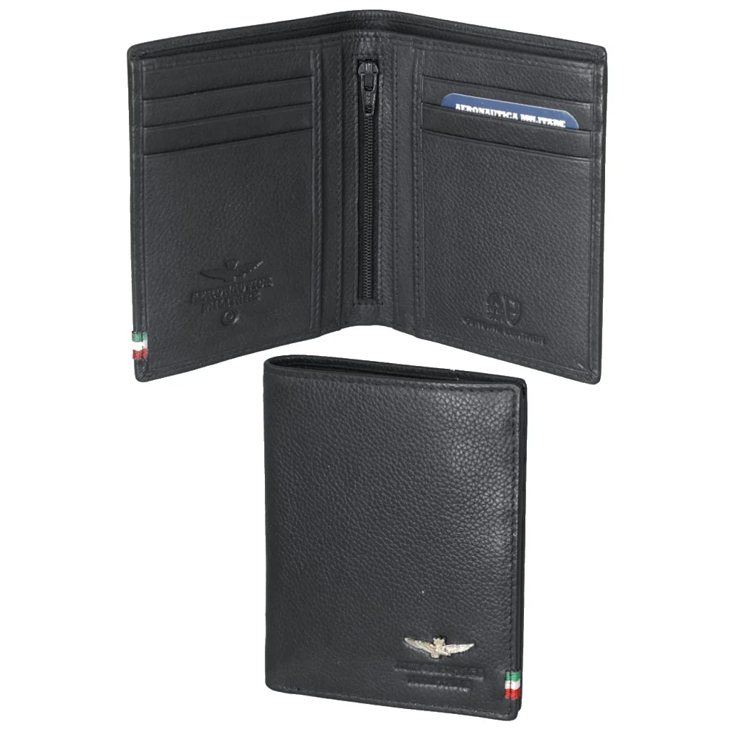 Férfi bőrtárca a tekintélyes olasz Aeronautica Militare márkától a népszerű fekete színben. Stílusos pénztárca, amely alkalmas sportos férfiaknak, akik az eleganciát is kedvelik.