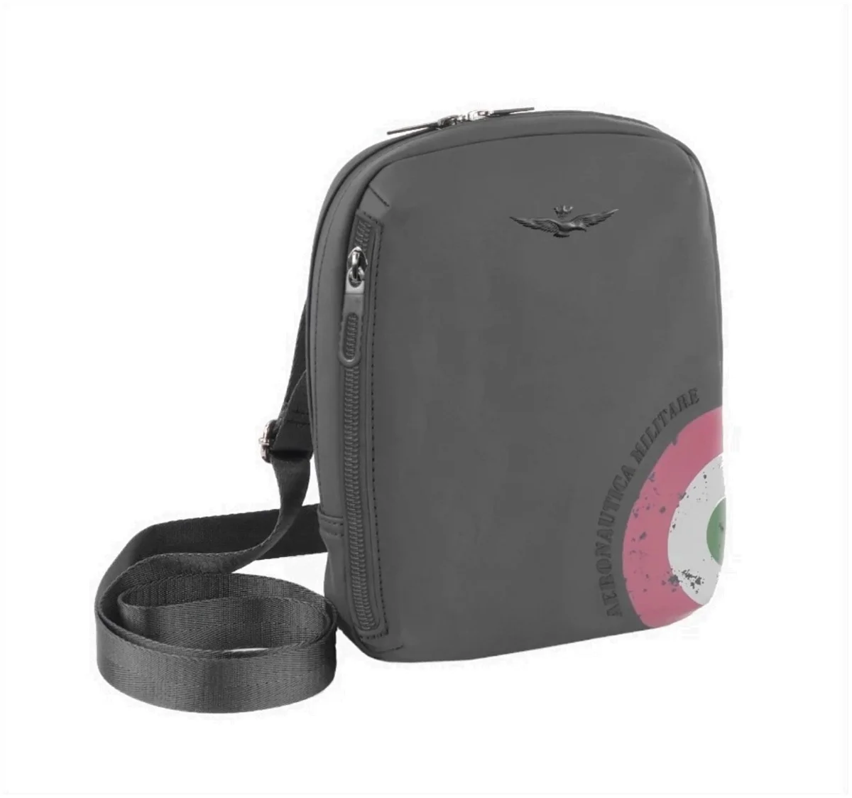 Stílusos kereszt válltáska vagy crossbody táska a személyes holmik számára a tekintélyes Aeronautica Militare márka Runway sorozatából a népszerű fekete színben. Imádni fogja a táska kényelmes méreteit, és minden lényeges dolog, például pénztárca, mobiltelefon, dokumentumok és kulcsok elférnek benne. A technikai gumírozott anyagból készült kereszttáska tökéletes választás azok számára, akik a funkcionalitás, a sportos elegancia és az olasz stílus kombinációját keresik. Ez a stílusos kiegészítő az Aeronautica Militare márka egyedi jellegét testesíti meg, és úgy tervezték, hogy ellenálljon a kedvezőtlen időjárási körülményeknek. A felső részen a márka finom logója, míg az alsó részen az olasz trikolor motívumot és az Aeronautica Militare feliratot tartalmazó merész grafika díszíti, kiemelve az exkluzív megjelenést.