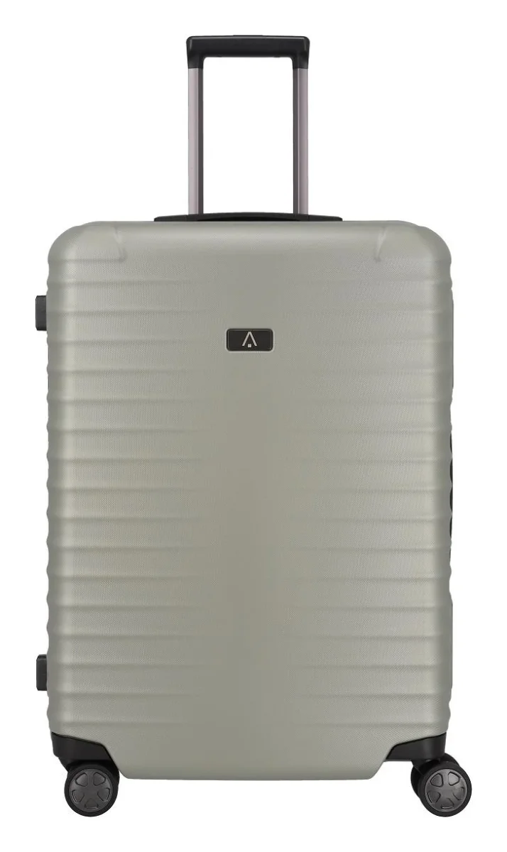 Németországban tervezett és gyártott exkluzív, négykerekű, vázszerkezetű, négykerekű kagylós bőrönd, beépített TSA-zárral ellátott pántos zárrendszerrel.