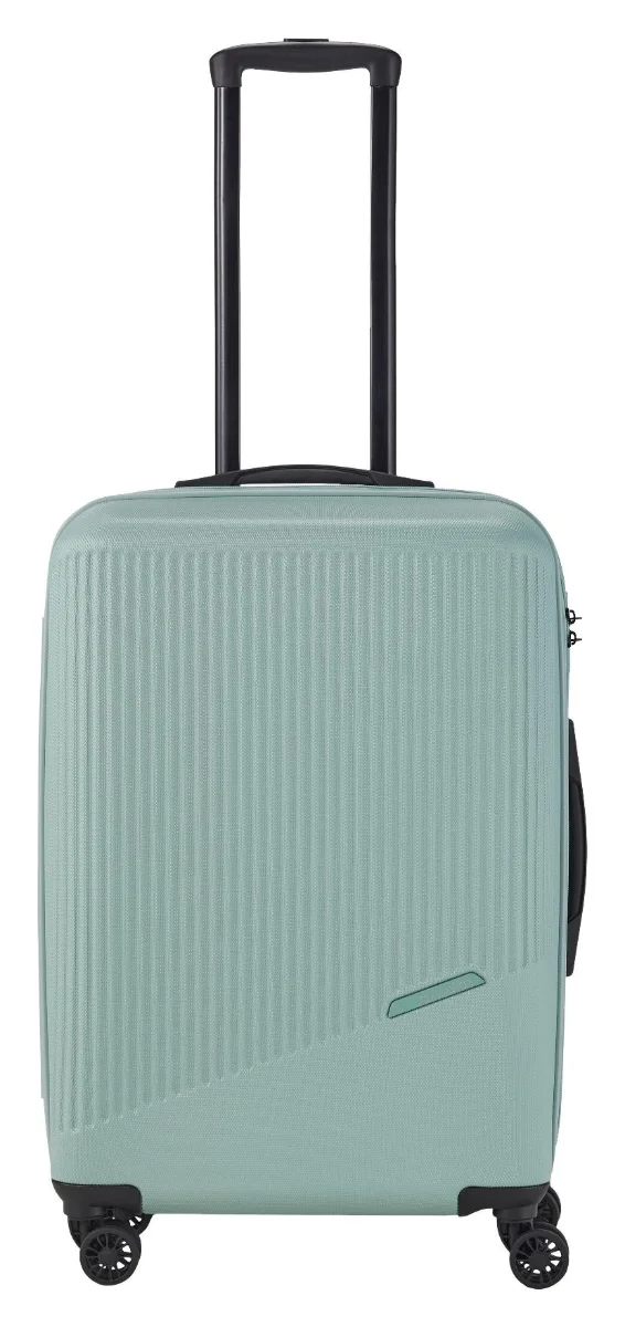 Négykerekű, robusztus ABS műanyagból készült, divatos pasztell színű kagylós bőrönd, beépített TSA zárral.