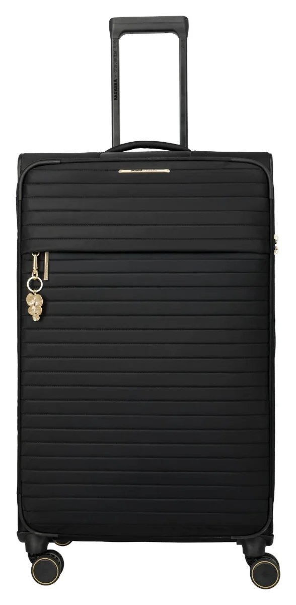 Luxus nagyméretű, négykerekű textil női bőrönd, beépített TSA zárral, névtáblával, levehető cipőtakaróval, ékszertartóval és stílusos kulcstartóval, újrahasznosított nejlonból és poliészterből.