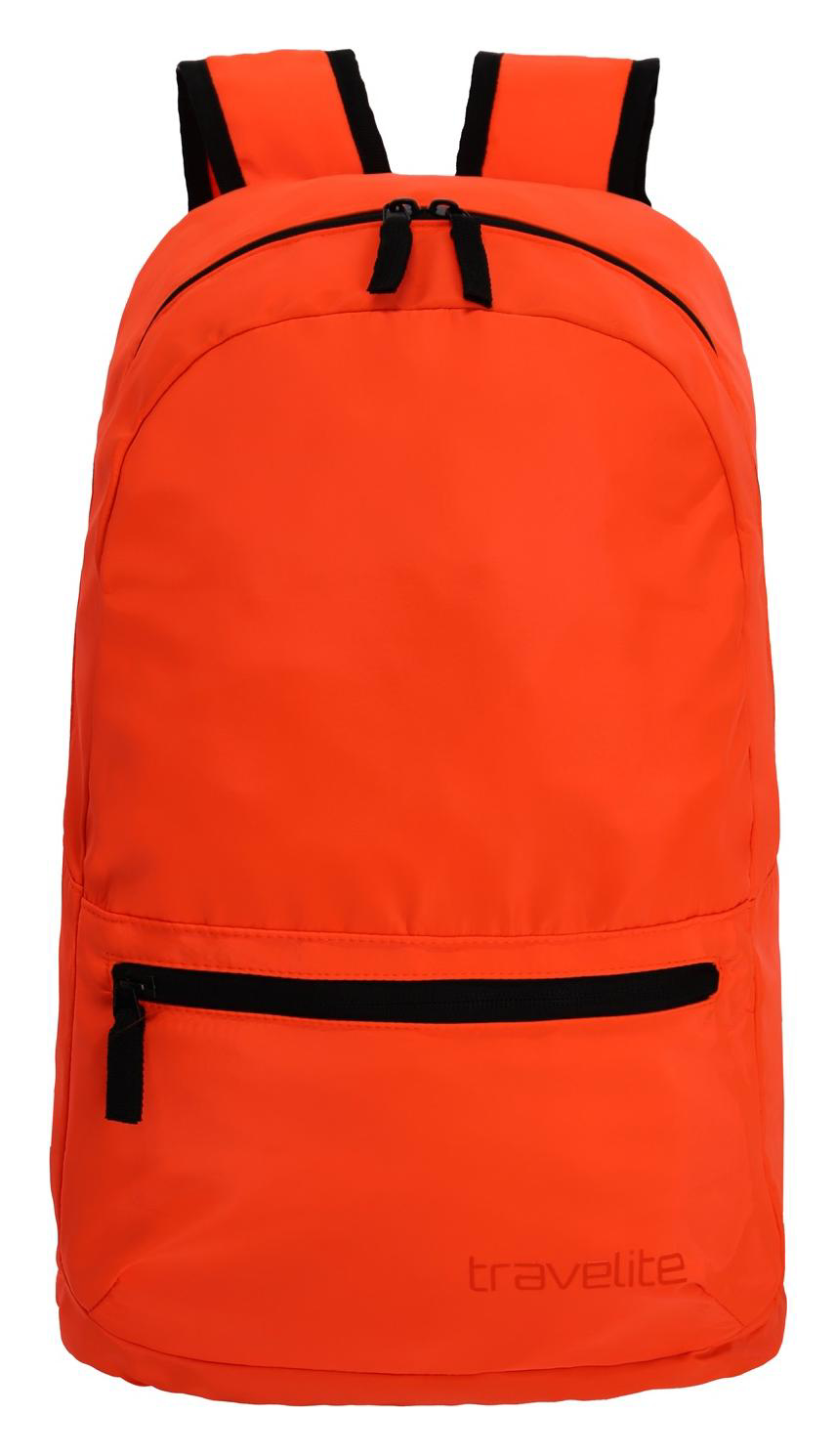 Összehajtható szövet hátizsák cipzáras elülső zsebbel.