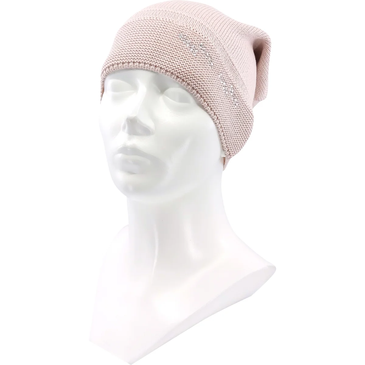 - női kötött sapka pamutból, Swarovski kövekkel díszítve
