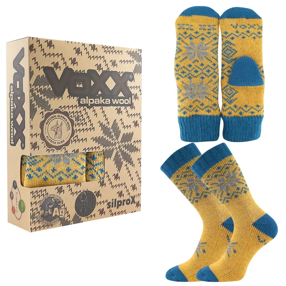 - ajándékcsomag vastag meleg zokni és kesztyű - női vastag frottír zokni párnázott zónákkal a hólyagok és hólyagok ellen, amelyek puha szegéllyel rendelkeznek, légáteresztőek, antibakteriális védelemmel rendelkeznek ezüstionokkal és maximális hőkomfortot nyújtanak a merinógyapjúnak és az alpaka gyapjúnak (dél-amerikai teveállatok szőréből) köszönhetően, hőmérsékleti osztály: D