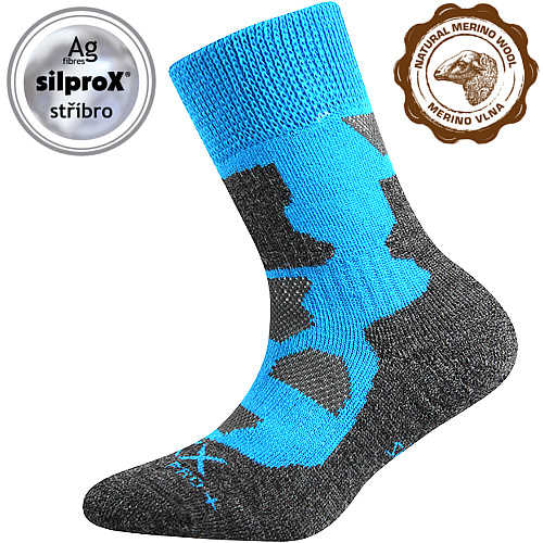 - gyermek frottír zokni, párnázott zónák a vízhólyagok és hólyagok ellen, puha szegély, magas légáteresztő képesség, antibakteriálisszilproX anyag védelme ezüstionokkal, maximális hőkomfort a CLIMAYARN merinó gyapjúnak köszönhetően, hőmérsékleti osztály: C
