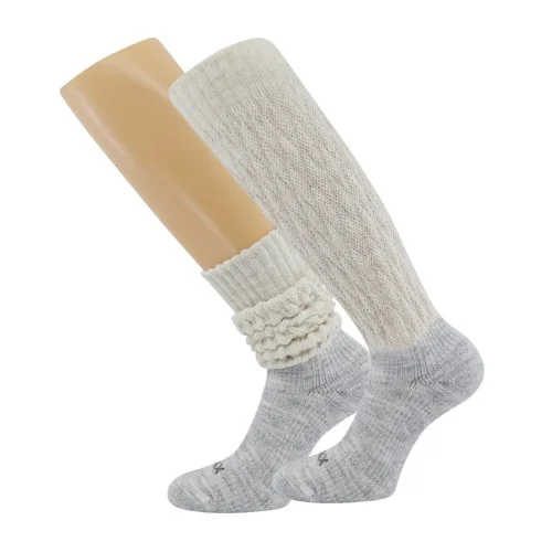A VoXX® NARVIK női téli zokni extra laza kötéssel a vádliban merinó gyapjú, alpaka gyapjú és akril kombinációjából készült. Felhúzva vagy letekerve is viselheti - vádlit és bokát egyaránt melegít. A magas zokni finom mintával rendelkezik, és a merinó- és alpaka gyapjúnak köszönhetően meleg. Nagyon praktikusak, C hőmérsékleti osztályban.