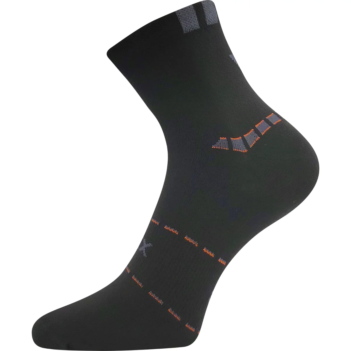 A VoXX® REXON 02 sportzokni férfi zokni a mindennapi viselethez vagy a különböző nyári sporttevékenységekhez. A jó nedvességelvezetést biztosító, magasabb pamuttartalmú sportzokni a lábfejnél légáteresztő zónával és puha, nem szorulós szegéllyel is rendelkezik. A zokni gördülésének megakadályozása érdekében a lábszár körül rugalmas zónával rendelkeznek, amely a zoknit a helyén tartja. A zokni A hőmérsékleti osztályban kapható, amely +10°C és +35°C közötti hőmérsékletre alkalmas.