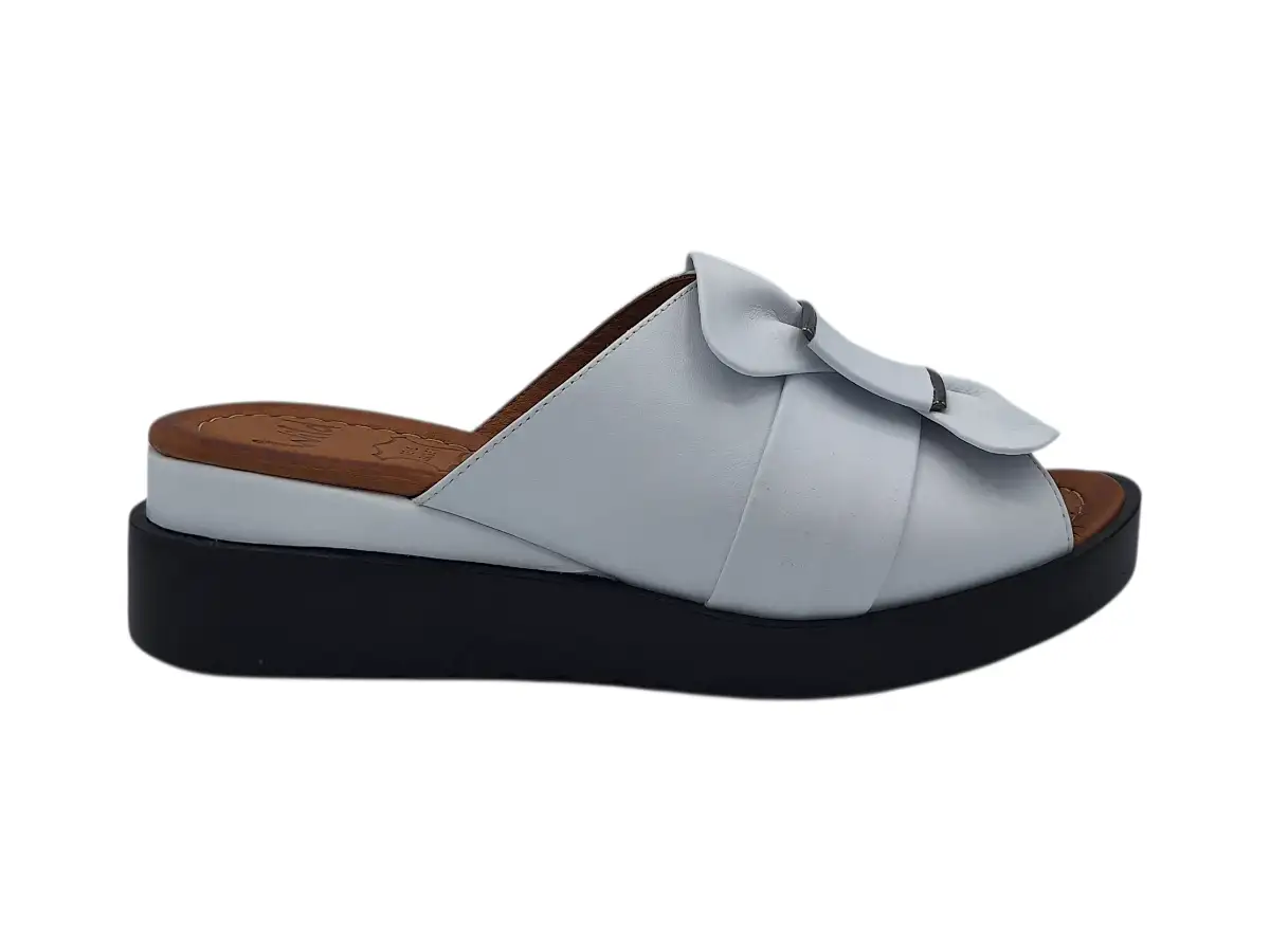 A Wild női papucsok az elegáns dizájn, a kényelem és a minőségi kidolgozás ideális kombinációját képviselik. Ezek a fehér színű nyári bőrpapucsok első pillantásra lenyűgözik modern megjelenésükkel, lenyűgöző fekete talpukkal és ék alakú szegélyükkel, amely optikailag meghosszabbítja a lábat, ugyanakkor stabilitást biztosít járás közben.